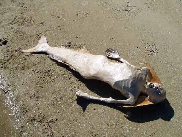 Сначала он подумал, что нашел какую-то странную рыбу, но потом понял, что ничего подобного раньше не видел. Покрытое чешуей туловище с головой и руками похоже на человеческое, но вместо ног растет рыбий хвост.